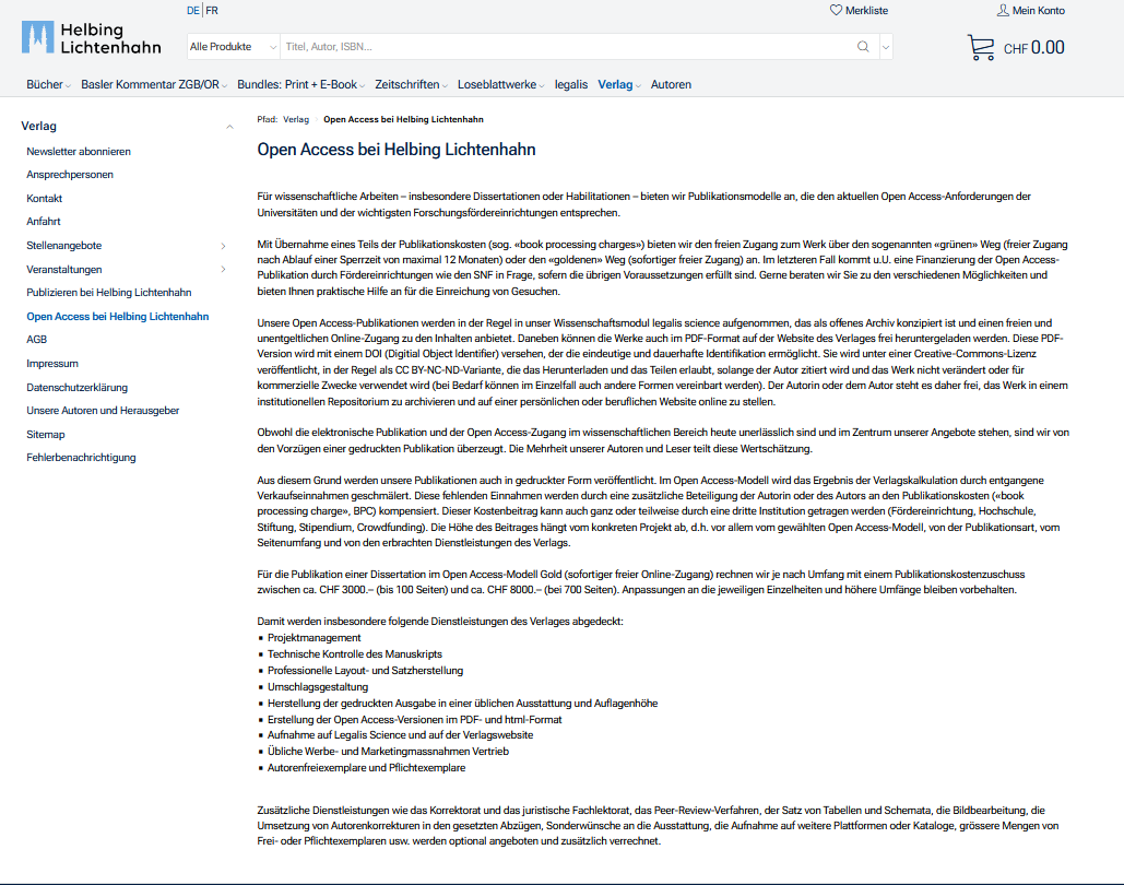 Policy: Open Access bei Helbing Lichtenhahn